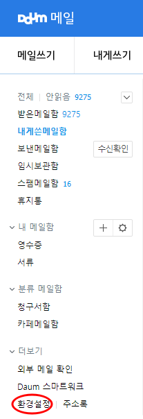 다음 메일에 로그인후 환경설정을 선택하세요.